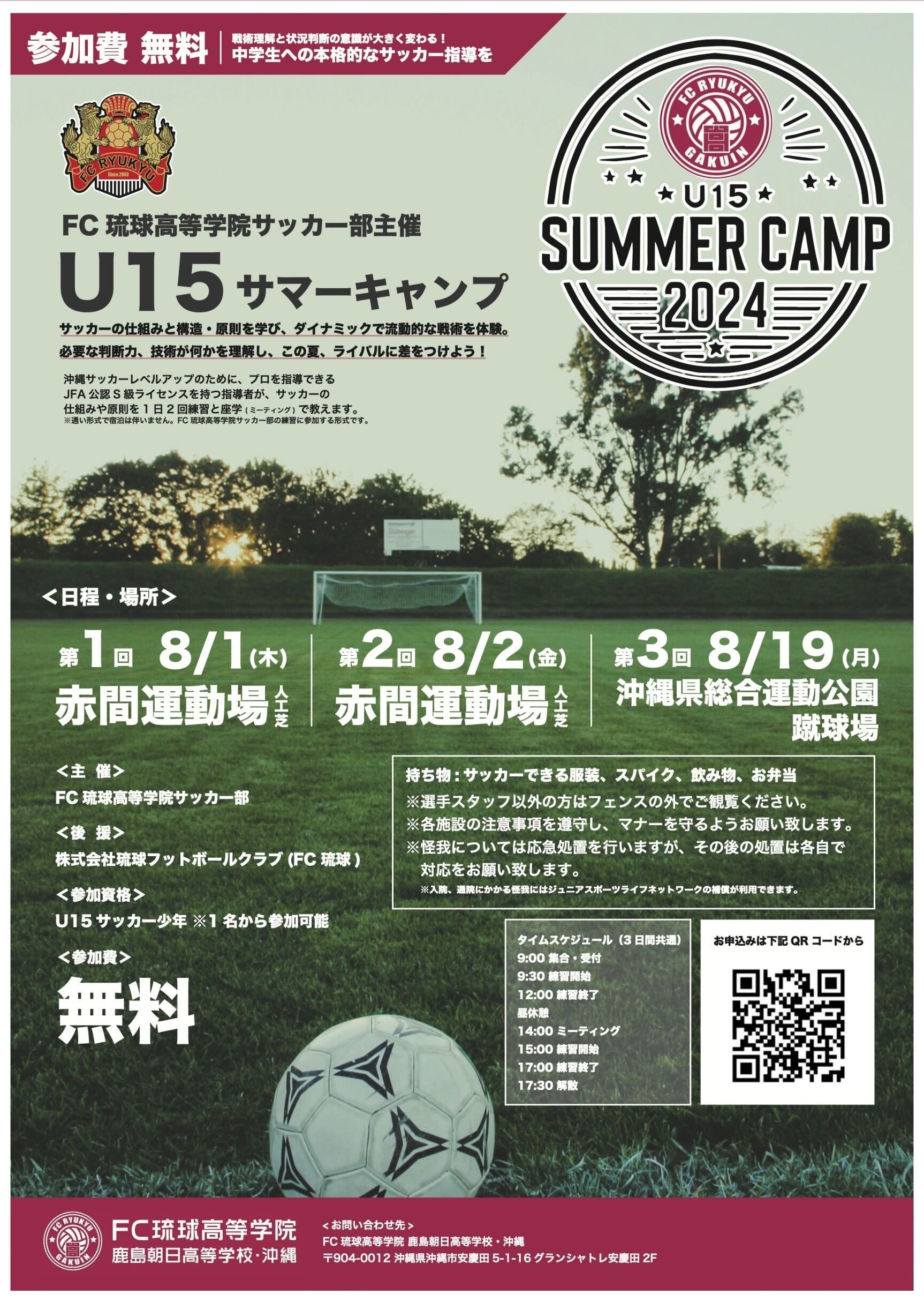 FC琉球高等学院サッカー部主催! サマーサッカーキャンプ2024開催のお知らせ