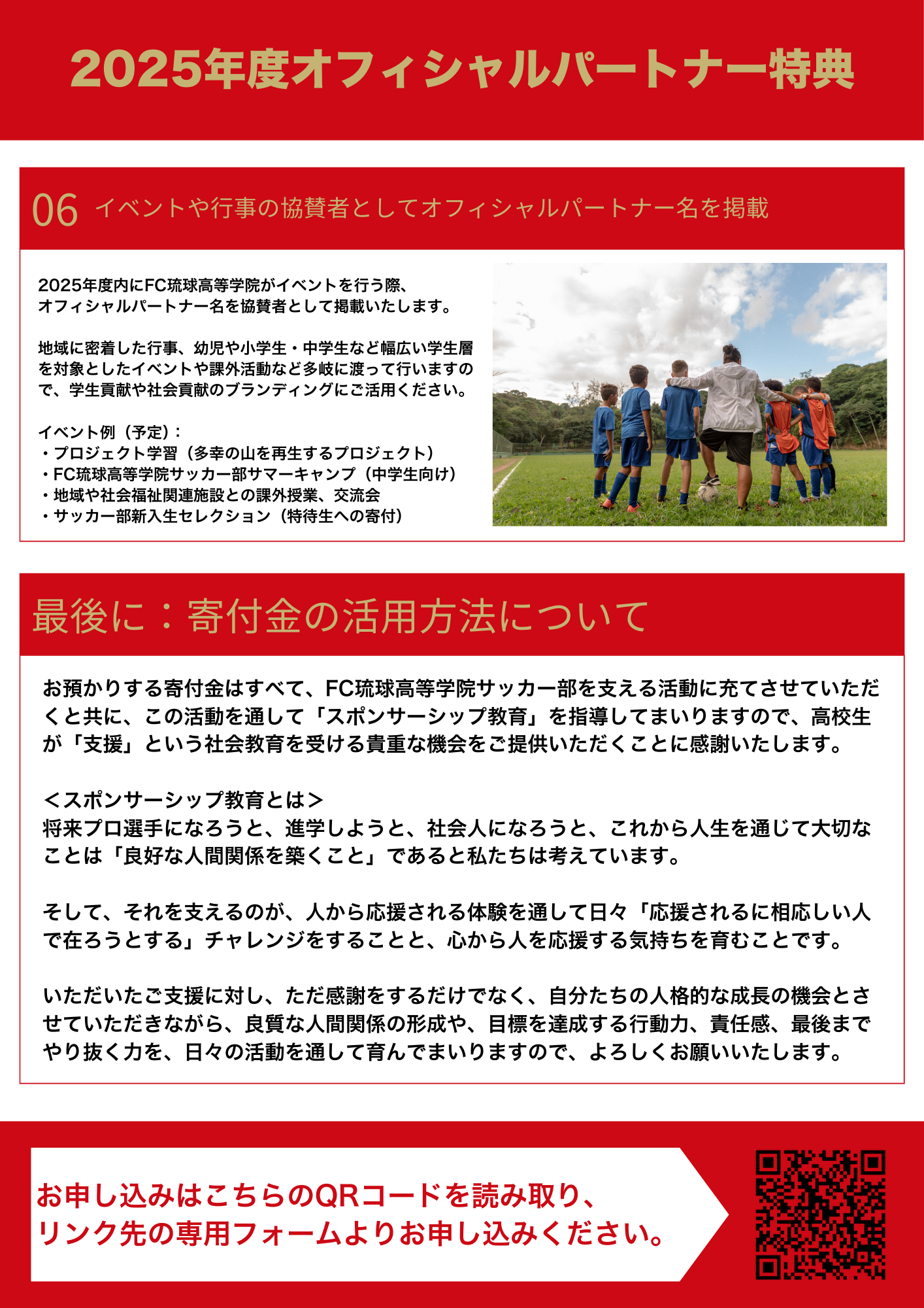 2025年度FC琉球高等学院オフィシャルパートナー募集チラシ