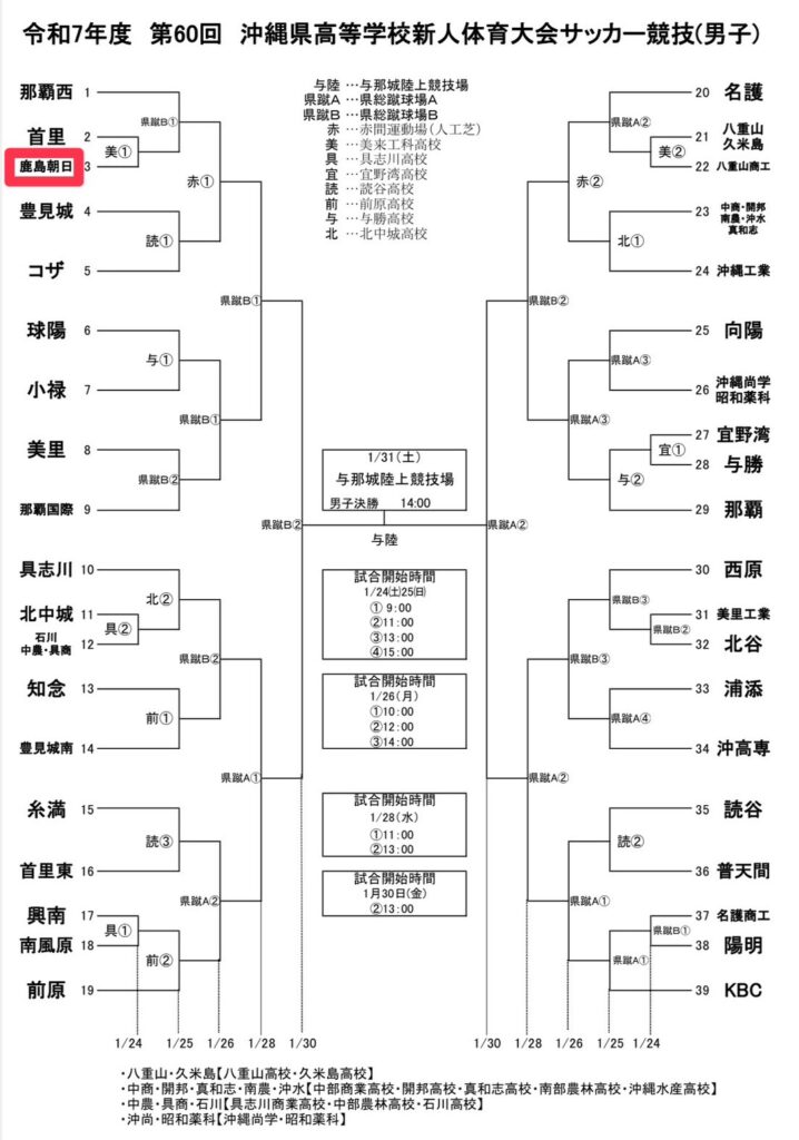 令和7年度第60回沖縄県高等学校新人体育大会サッカー競技(男子)が1/24(土)から開幕します!